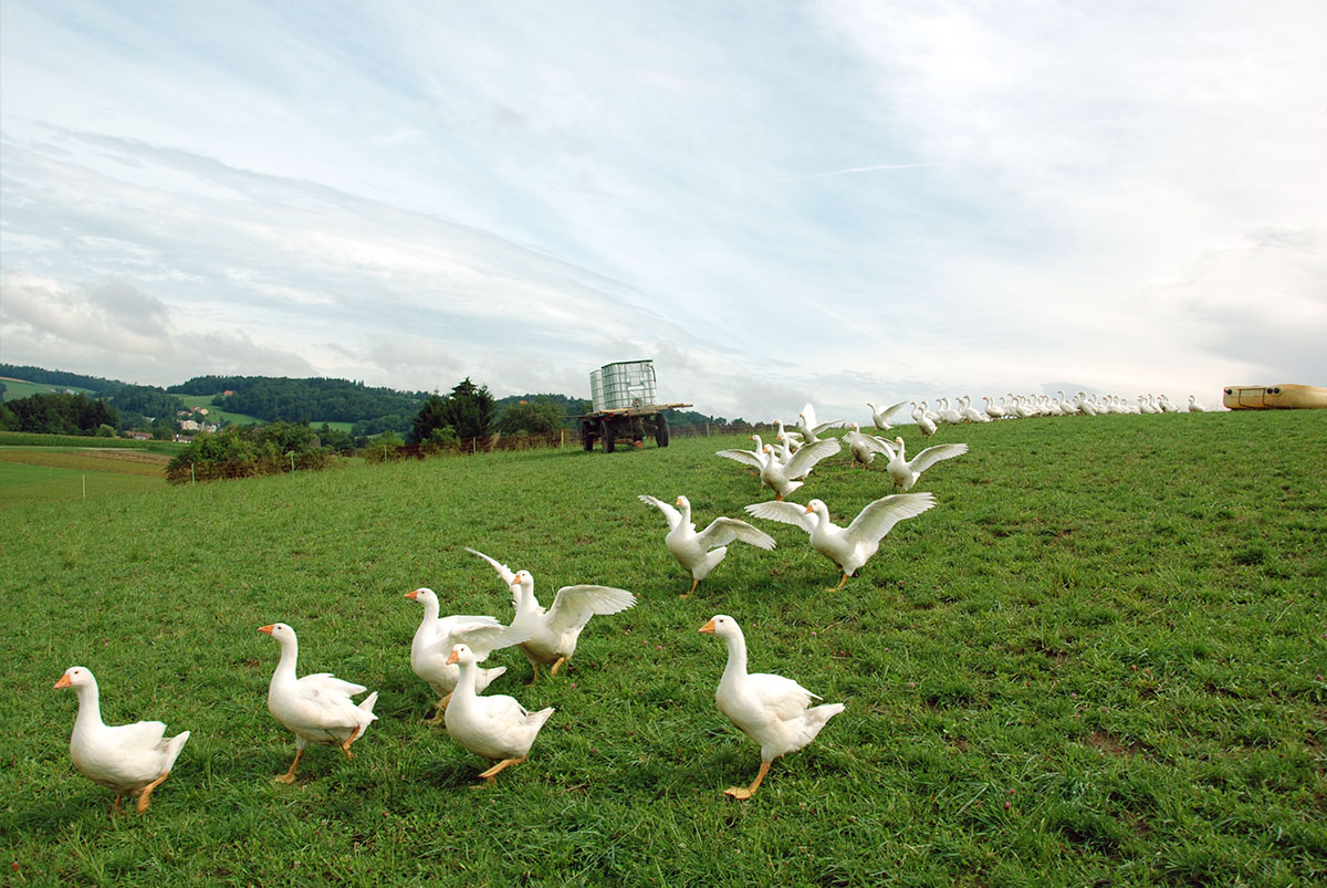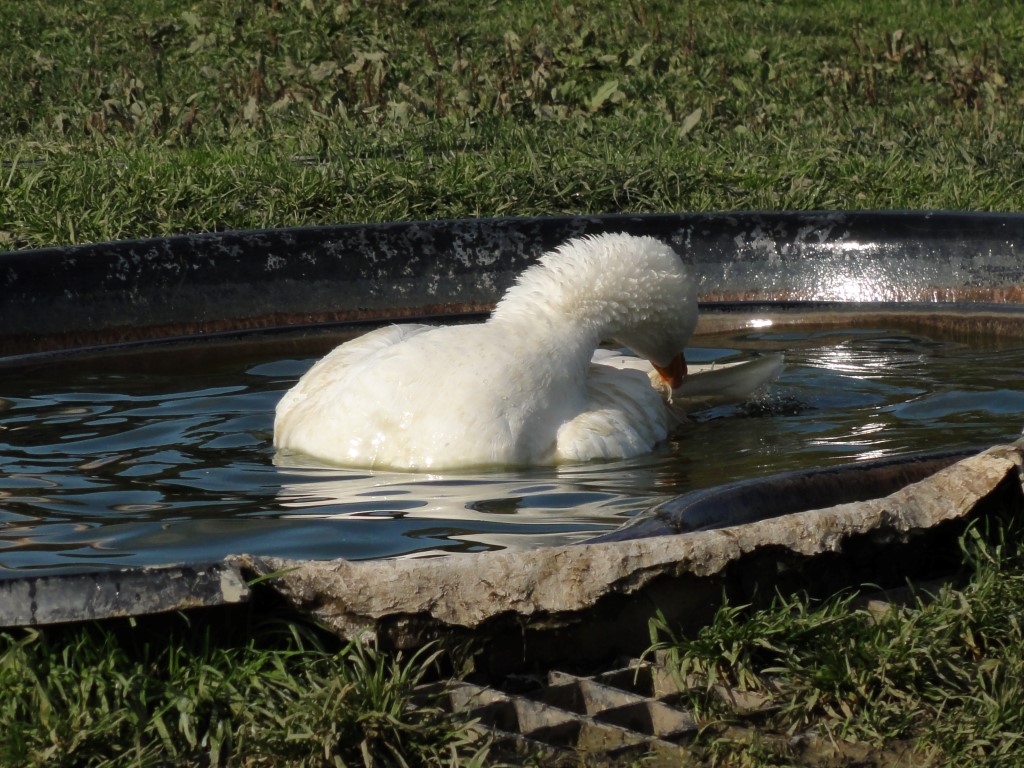 L'oie, tout comme le canard, fait partie des oiseaux d'eau. Cela veut dire qu'ils ont besoin d'un point d'eau où ils peuvent se baigner. Ceci pour entretenir leur plumage, pour garantir le bon taux d'humidité pendant la couvaison ou pour la stimulation et l'accouplement.