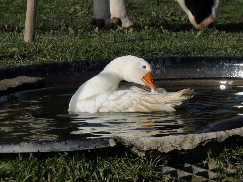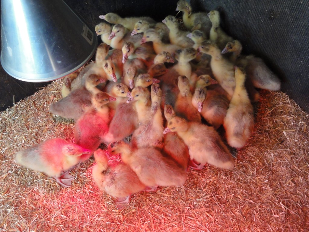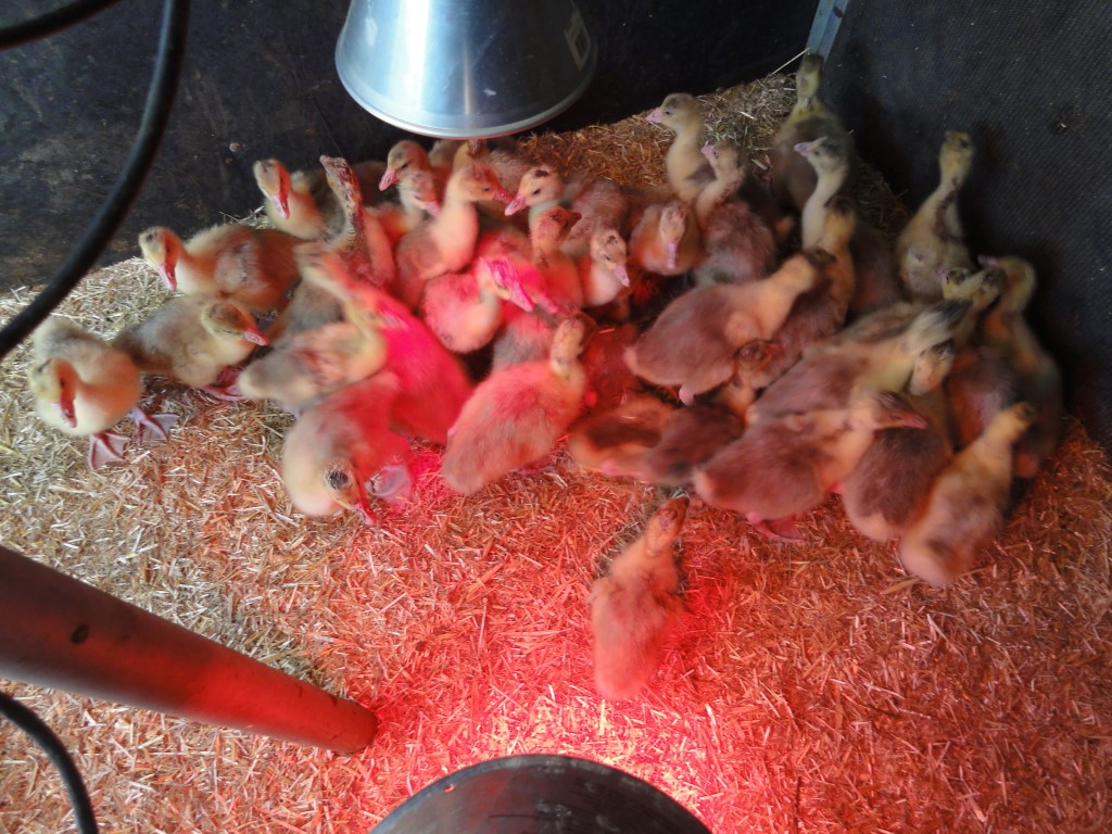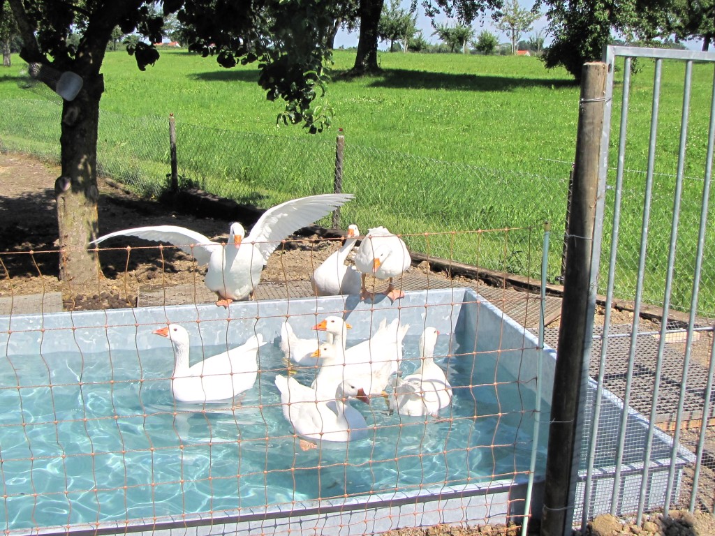 Les oies éclosent soit directement sur la ferme, ou sont livrés en tant que poussin sur l'exploitation. Les oisons passent leurs premiers jours de vie dans l'écurie chauffée. Dès la troisième semaine, les animaux peuvent gentiment sortir aux prés. Ainsi ils s'habituent gentillement aux conditions extérieures et peuvent commencer à manger leurs premières graminées.