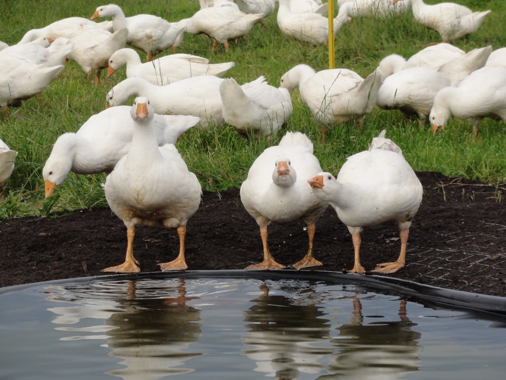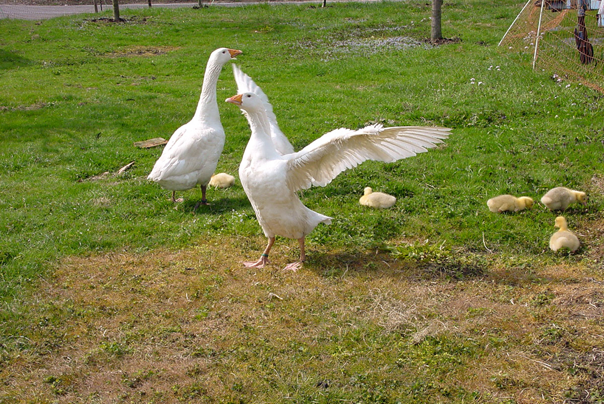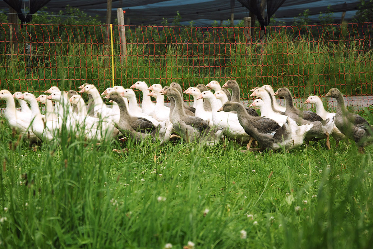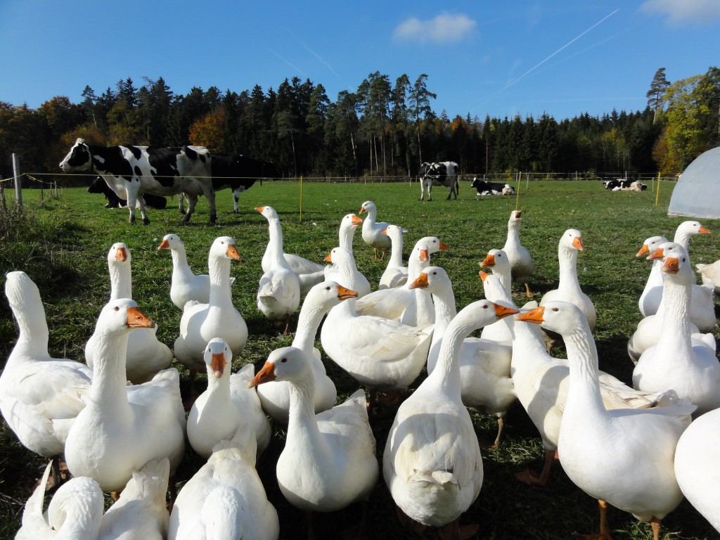 L'aliment de base des oies de pâturage se compose d'herbe fraîche, contrairement aux oies engraissées de manière intensive. Le but est d'élever les animaux de manière la plus naturelle possible afin qu'ils atteignent un poids d'abattage raisonnable. Grâce à sa saisonnalité et sa détention extensive (pâturage), l'oie de pâturage est un animal de rente idéal durant la période de végétation. Les oies de pâturage apportent une plus-value aux producteurs ainsi qu'au consommateur. La détention naturelle est en harmonie avec les convictions de nos producteurs et amène à un produit de qualité pour le gourmet.